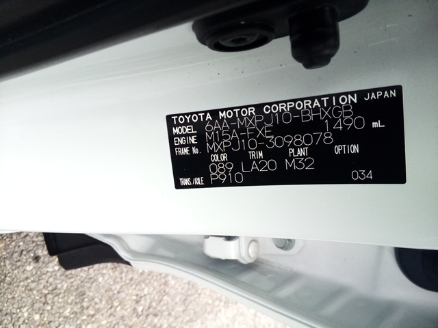 車体番号 MXPJ10-3098078