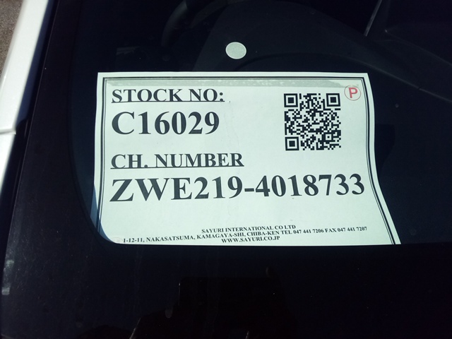 車体番号 ZWE219-4018733