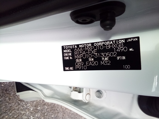 車体番号 MXPJ10-3130502